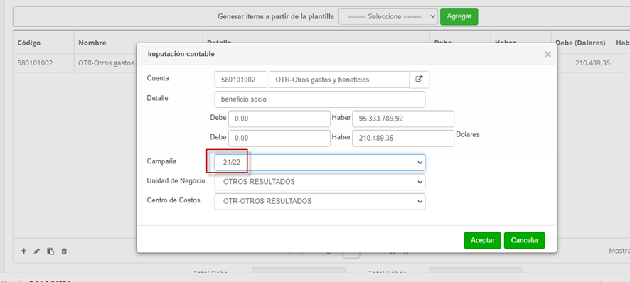 Se detalla como realizar la compensación Beneficio de socio en resultado por producción: