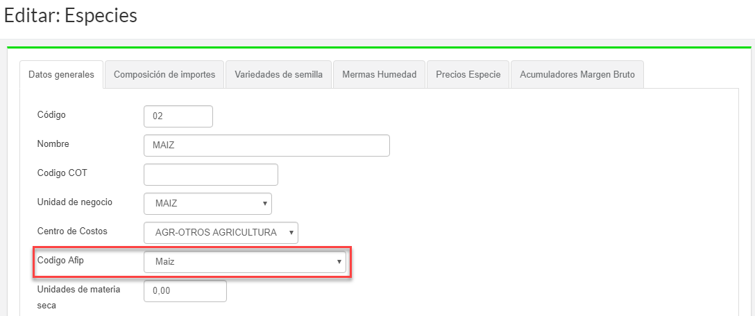 - Configurar padrones de Campañas, Especies, Provincias y Localidades con Códigos de AFIP