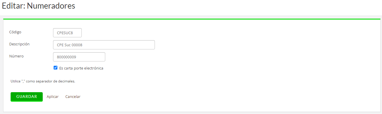 Desde el padrón de numeradores debemos crear el numerador que utilizaran las CPE.