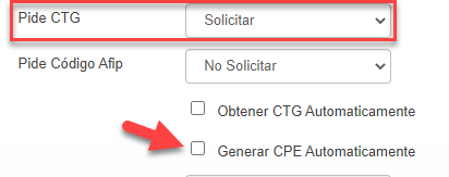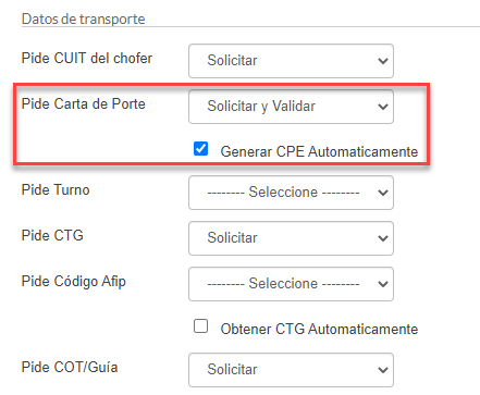 En los comprobantes de Acopio del tipo "Transferencia entre Depósitos" en necesario indicar que "Solicita" CTG para que habilite la opción de "Generar CPE Automáticamente"