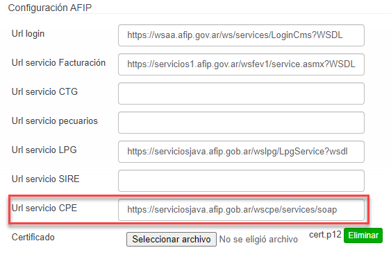 - Adherir Servicio WSCPE - Carta de porte electrónica Web Service en AFIP y vincularlo con el certificado digital vigente.