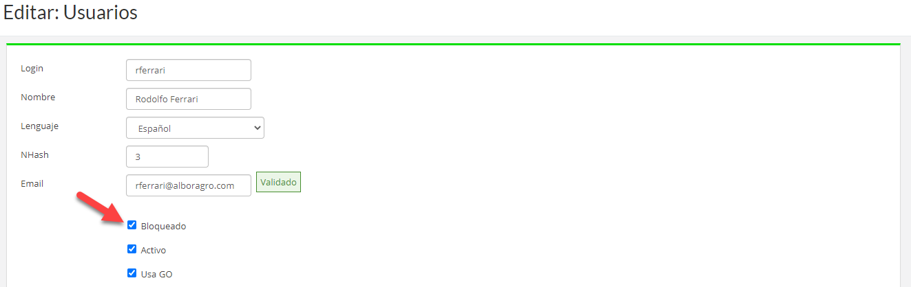 Por último quitamos el tilde de la opción "Bloqueado" y guardamos.