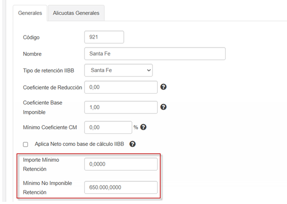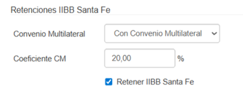 • Si el proveedor tiene convenio especial, cargar el % correspondiente a Santa Fe (coeficiente/porcentaje).