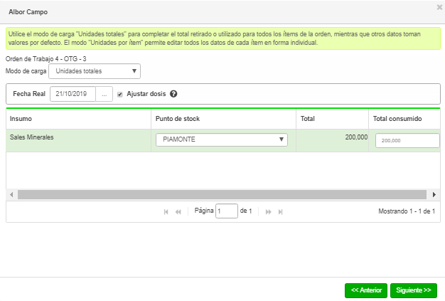 Unidades/Dosis: en este dato pueden indicar las unidades totales o la dosis por Animal eligiendo la opción preferida desde el combo.