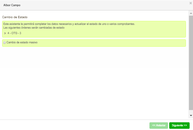 Una vez confirmados los datos reales, hacer clic en siguiente para proceder al cambio de estado.